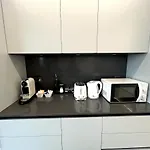 The apartment includes a bidet, a separate toilet, and a shower for your comfort. Dryers, dressing gowns, and towels are also included in the bathroom.